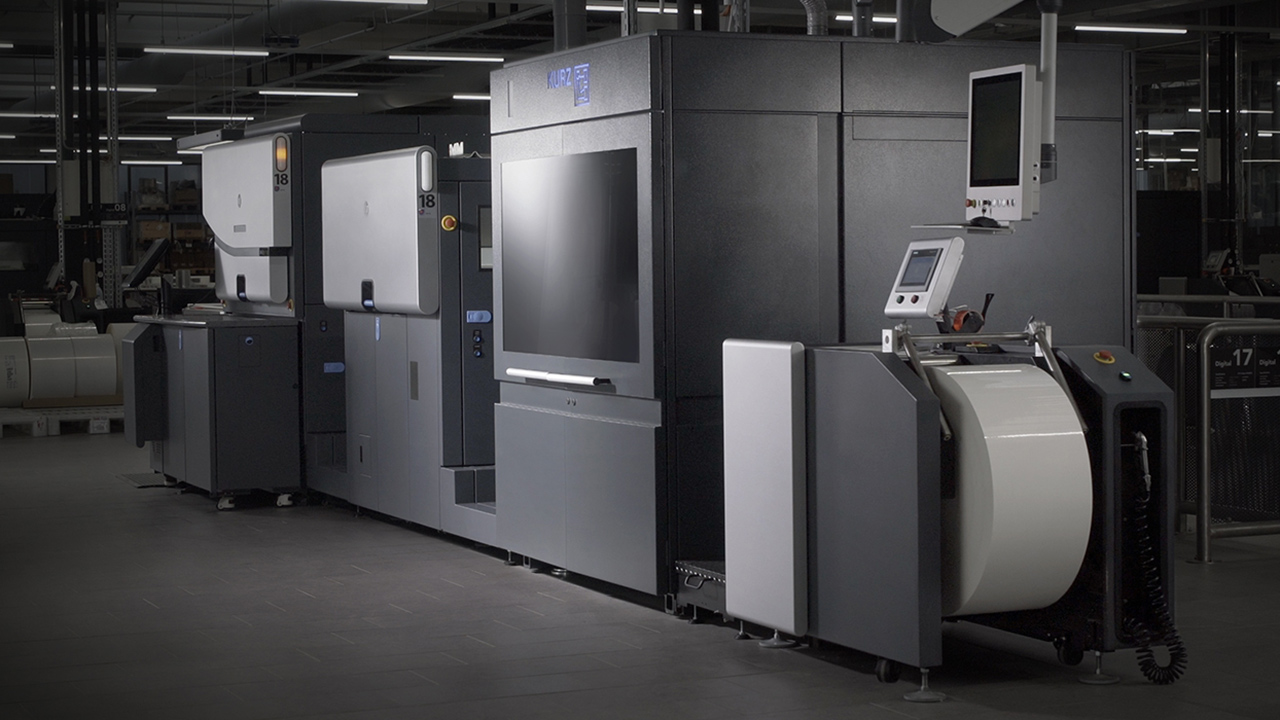 The Kurz DM-UniLiner 2D digital embellishment unit, which is independent of printing systems and equipped with inkjet technology, was designed for the narrow-web sector. The special feature: Metallization can be applied in pre-print or post-print processes. The overprinting of the metallized designs or holographic structures creates a variety of iridescent color and light effects.