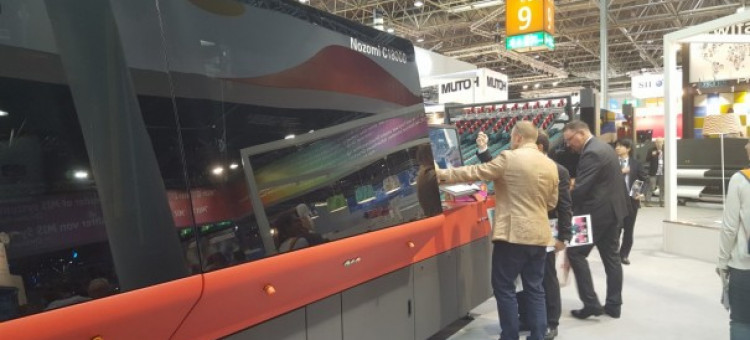 The sheer size of this inkjet behemoth has to be seen to be believed, and the EFI Nozomi C18000 was garnering a lot of attention in EFI's booth. The Nozomi touts its single-pass LED technology and high speed capabilities among its advantages. The Nozomi, which shares its name with one of the fastest trains in Japan, can reach speeds of up to 246 linear feet per minute. Nozomi prints direct-to-board.