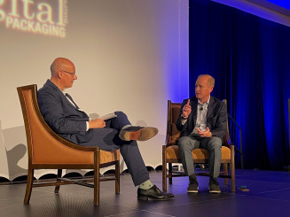 Marco Boer (left), Digital Packaging Summit co-chair and VP at IT Strategies, hosted a fireside chat with Peter Schaefer, partner at New Direction Partners.