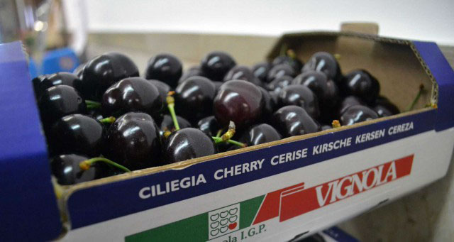 Cherries packaging, an example of inkjet-printed corrugated packaging with PageWide true water-based inks.