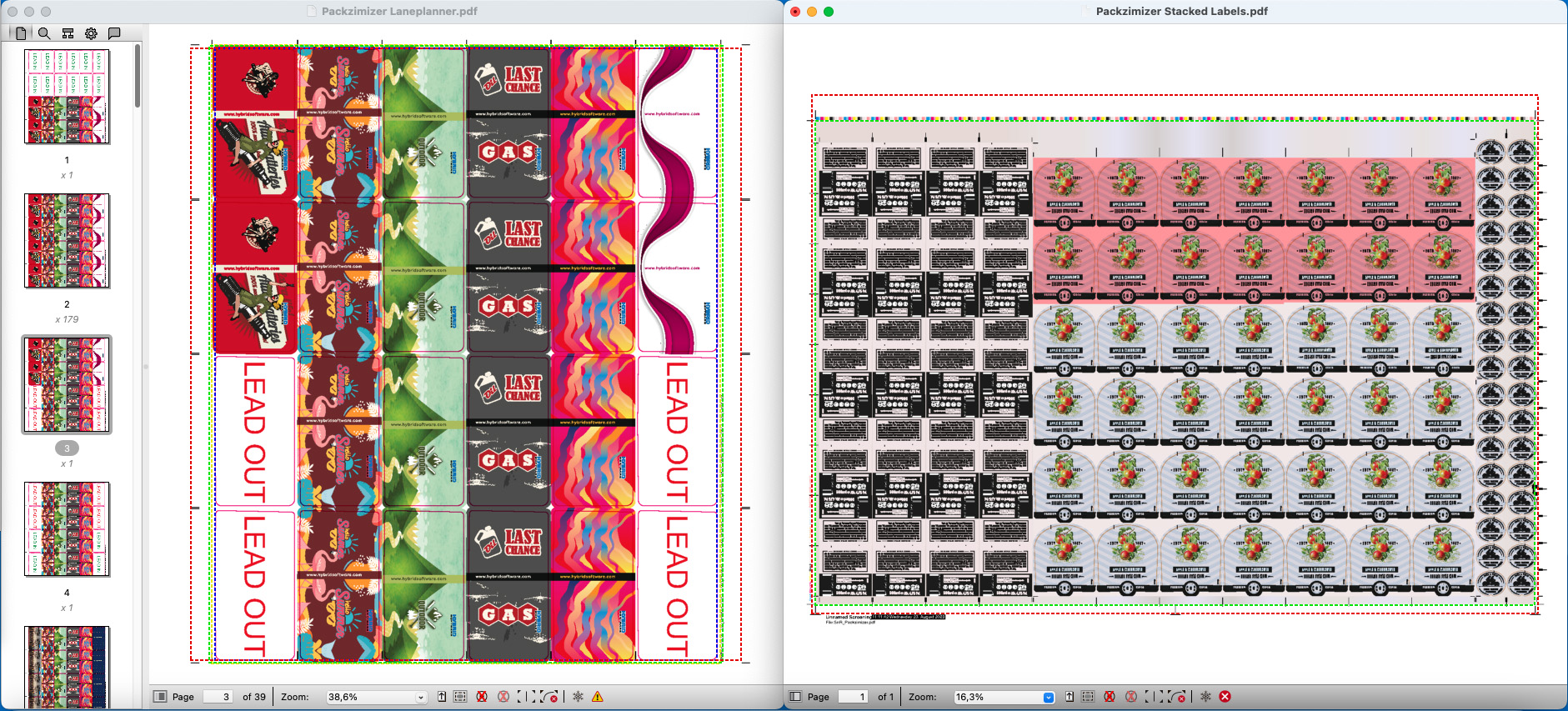 Intelligent algorithms to gang labels quantity-based with print-ready layouts for roll- and sheet-fed printing. | Credit: HYBRID Software