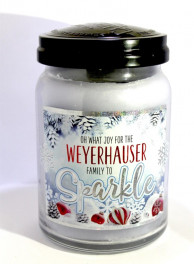 One of the samples Wolf shares is a holiday candle that the company gave to its clients. It was a sample that had individual clients’ names in foil on the candle. She explains that it wasn’t only a high-end label at that point, but a custom gift label.