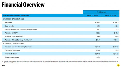 Quad Reports Net Sales Gain, But Larger Net Loss, in First Quarter 2023 Results