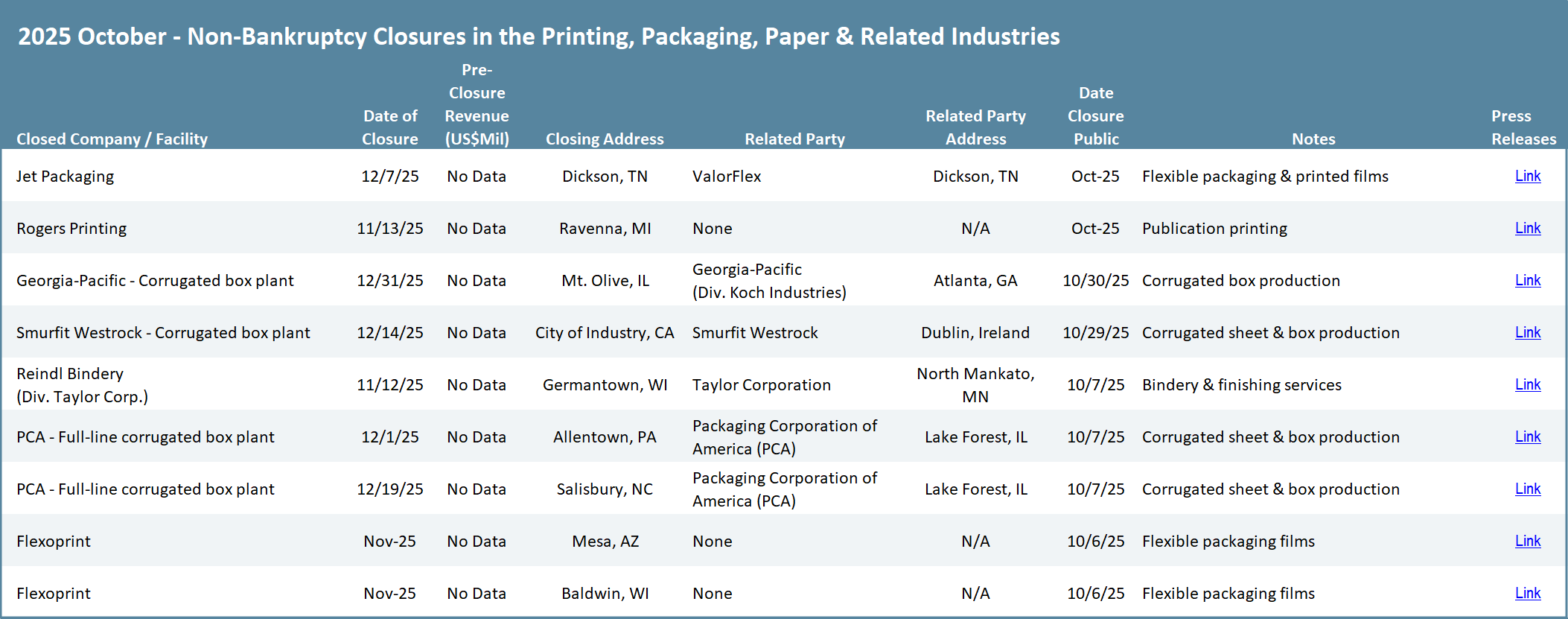 Now the story has turned. The Wall Street Journal reported in September 2025 that U.S. box shipments had fallen to their lowest levels since 2016 and that nearly nine percent of domestic containerboard capacity had gone offline within eight months. The Journal article stated that this was an unprecedented and sudden decline that represents roughly twice the capacity lost during the 2009 recession. The M&A and plant closure data from October confirms what many operators already feel: the corrugated market has entered an uncompromising correction phase. In October, corrugated producers announced the closure of four plants.