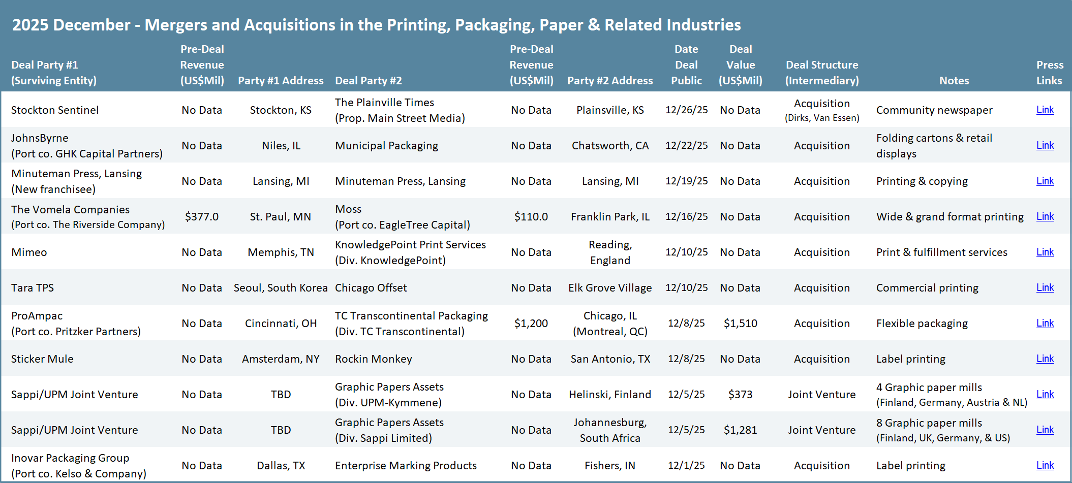 For much of the past decade, transformation has been framed as a destination: printers becoming packagers, converters becoming platforms, legacy printing businesses adding promotional products and other services to become one-stop shops. December 2025 suggested something more sobering and more demanding, as illustrated by two very different reciprocal strategic moves. Transformation, as illustrated by two transactions announced during the month, has become a continuous process, one that requires companies not only to enter new markets but to know when to turn sideways or exit them as well.