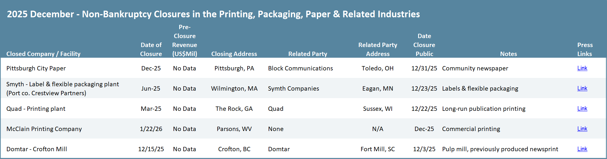 In our opinion, expressed at the time, the transformation of TC was possibly the best example of a planned, disciplined, articulate and well-executed strategy that utilized a company’s existing financial strength gained from its traditional foundation, in this case printing newspapers and magazines, to build out an entirely new expertise in a much more desirable (and likely sustainable over the long term) segment of the printing industry. (See The Target Report: Flexible Packaging is Hot – November 2017.)