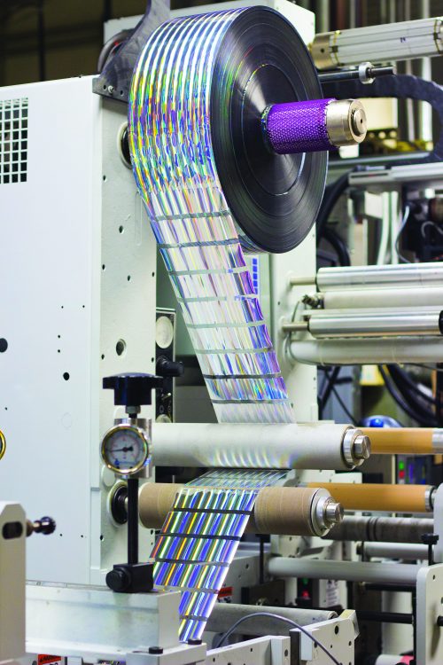 New York Label & Box Works is a leader in brand protection solutions. Pictured: Holographic foil is implemented in-line. Image courtesy of New York Label & Box Works.