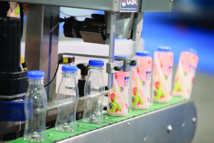 Tom Egan of PMMI explains that data analytics will be beneficial to printers and converters’ processes. Here, a line of shrink sleeves are applied to bottles during PACK EXPO Las Vegas 2017. Image courtesy of PMMI.