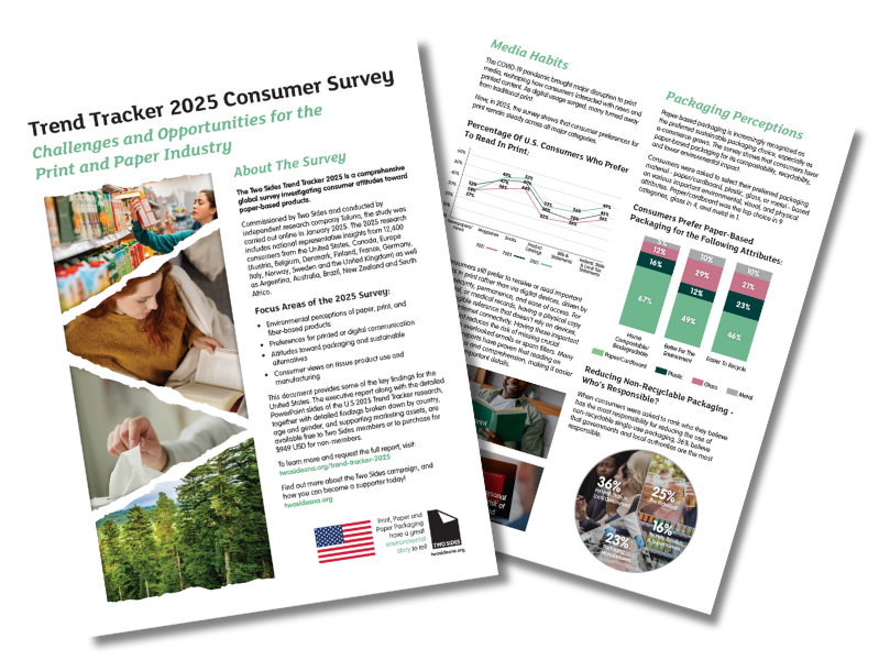 Two Sides North America has released the Two Sides 2025 Trend Tracker for the United States and Canada. This expansive international study, commissioned by Two Sides and conducted by independent research firm Toluna, gathered insights from more than 12,400 consumers across 17 countries to better understand perceptions of paper, print, packaging, and tissue products.
